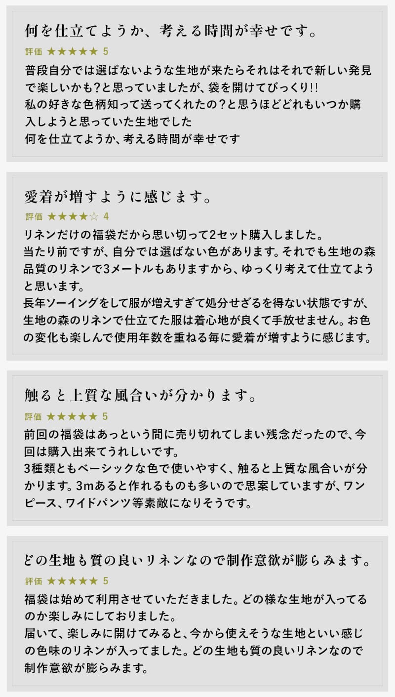 生地の森が誇る、最高級ベルギーリネンを贅沢に詰め込んだ特別な福袋です。
