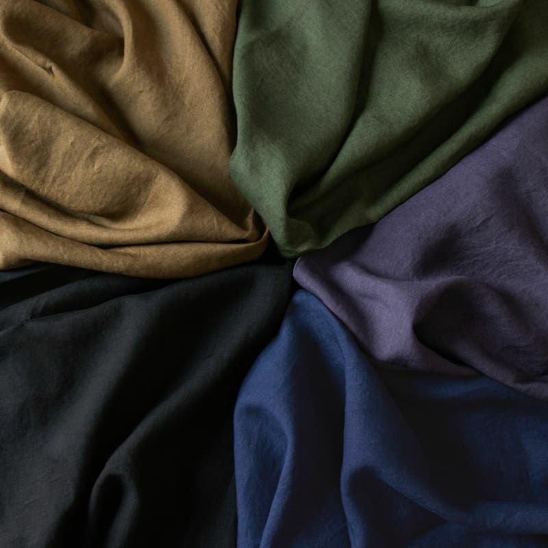 ベルギーリネン40番手リュードバックハーフ color:(左上から時計回りに)3/ブラウン、4/カーキ、8/パープル、14/ダークブルー、BK/ブラック