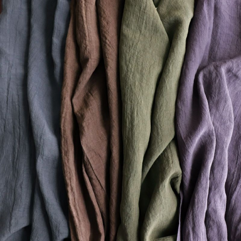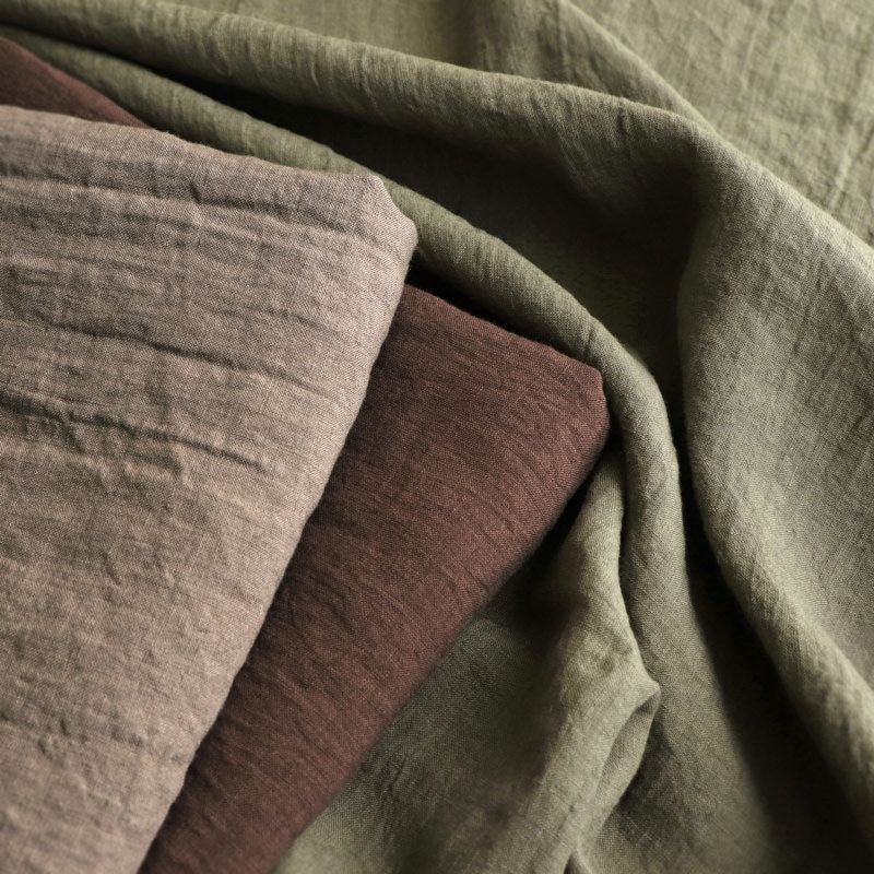 ワイド幅ベルギーリネン60番手 ナチュラル染めタンブラー仕上げのくすみカラーcolor:グレーネイビー/茶/カーキ/グレーパープル