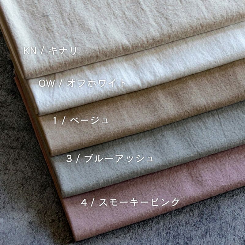 綿麻 ルーズオックスダメージダイド コットンリネン オックスフォード生地color:KN/キナリ、OW/オフ、1/ベージュ、3/ブルーアッシュ、4/スモーキーピンク