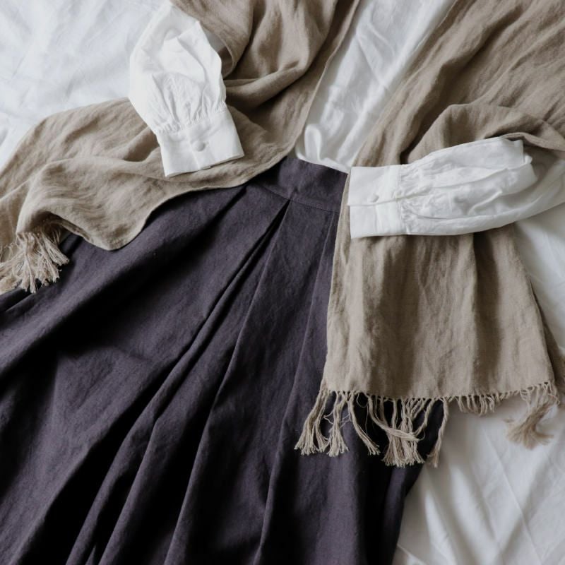 ・加工上の特性により、(上記画像のような)織ムラ、かみなりジワ、糸節、両耳のシワや折れなどが見られます。自然な風合いとしてご理解ください。
