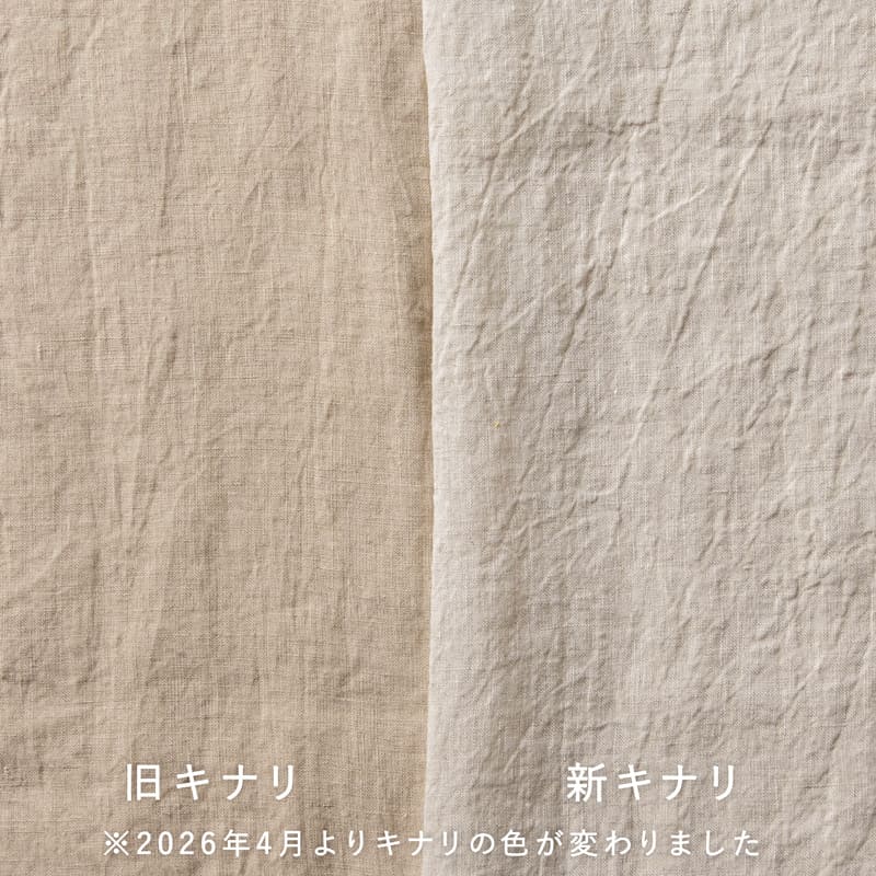 洗いこまれたベルギーリネン異番手ローン左:以前のキナリ 右:現在のキナリ