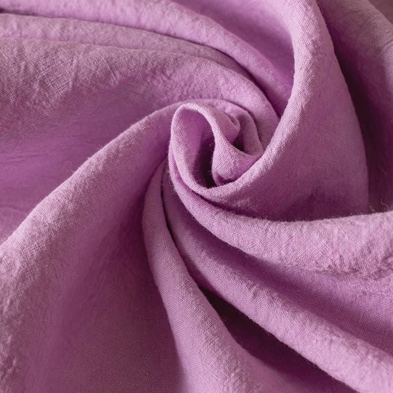 月明かりに照らされたような柔らかなラベンダー色「ムーンダスト」 無地染めフレンチリネン「リノクルール(Lino Couleur)」は、良質なフレンチリネンの40番手の糸を使用。 キレイな色彩を表現するために、敢えて原料の生成り(キナリ)からではなく、晒して白にしてから染色を施し、月明かりに照らされたような柔らかなラベンダー色「ムーンダスト」を付けました。