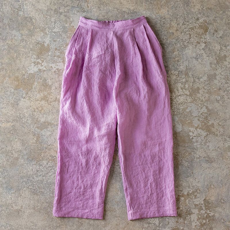 無地染めフレンチリネン「リノクルール(Lino Couleur)」ムーンダストで作ったパンツ