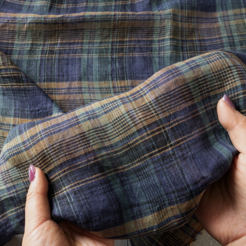 「先染め異番手リネン甘織りマドラスチェック」 -