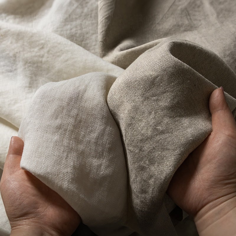 キナリは、良質なベルギーリネンの原料色そのままを生かした自然な表情で、リネン糸本来の織り感と光沢を際立たせます。