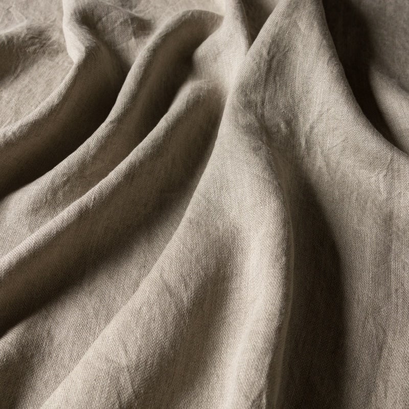 リネン本来の持ち味を最大限に引き出すため、ゆっくりと時間をかけて染色し、柔らかさとハリを両立。