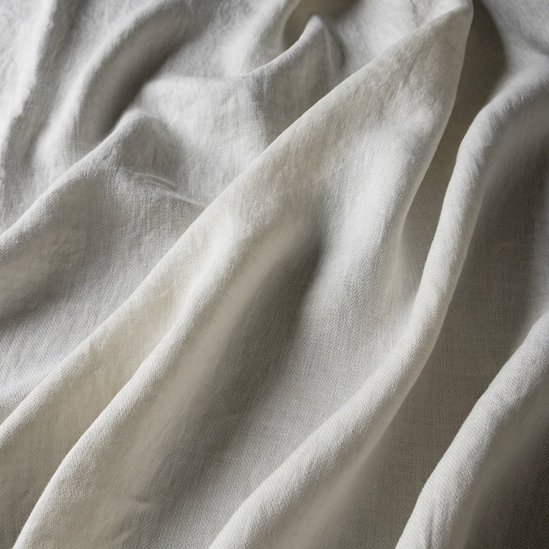 ブロークンツイル(ラチネ織り)ならではの細かな凹凸が、リネンの光沢と陰影を引き出し、立体感ある織りが、平織りでは味わえないしなやかさと自然な落ち感を生み出します。