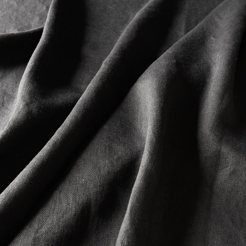 ブラックはキナリをベースに染色されており、真っ黒ではなく、くすみのある深みがしっとりと柔らかい陰影を生み、落ち着いた表情を演出します。