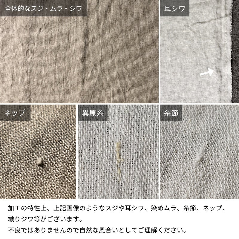 加工上の特性上記画像のようなスジや耳シワ、染めムラ、糸節、ネップ、織りジワ等がございます。不良ではありませんので自然な風合いとしてご理解ください。