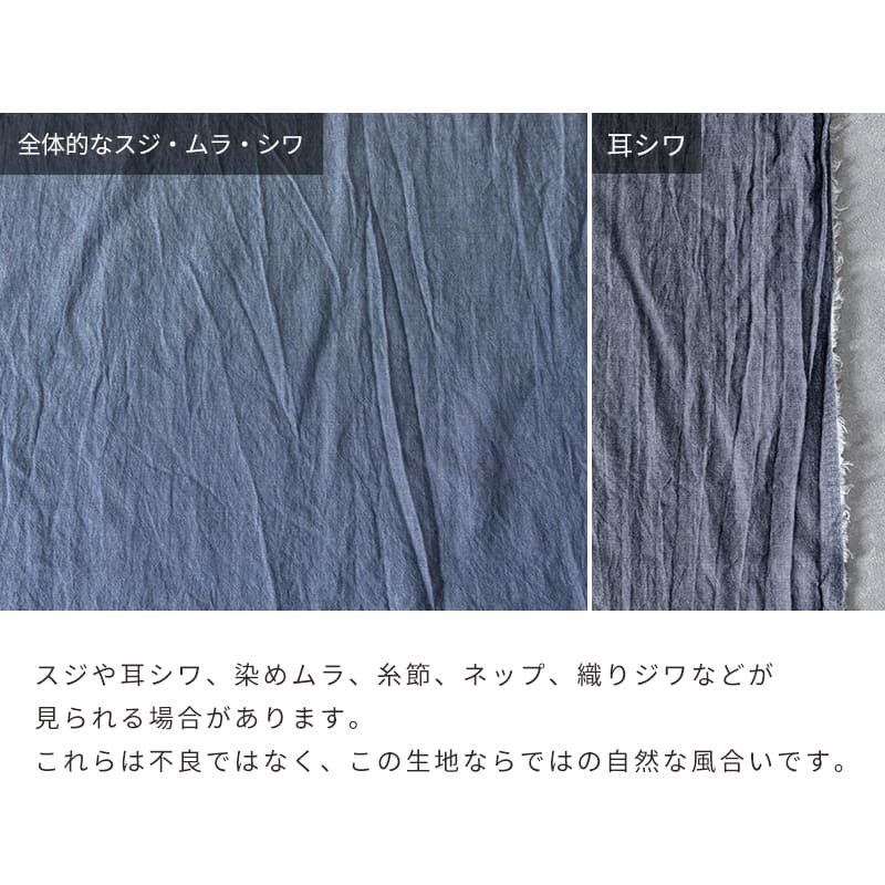 • 原反洗い加工の特性上、色差・アタリ・中希(色ムラ)が生じます。
