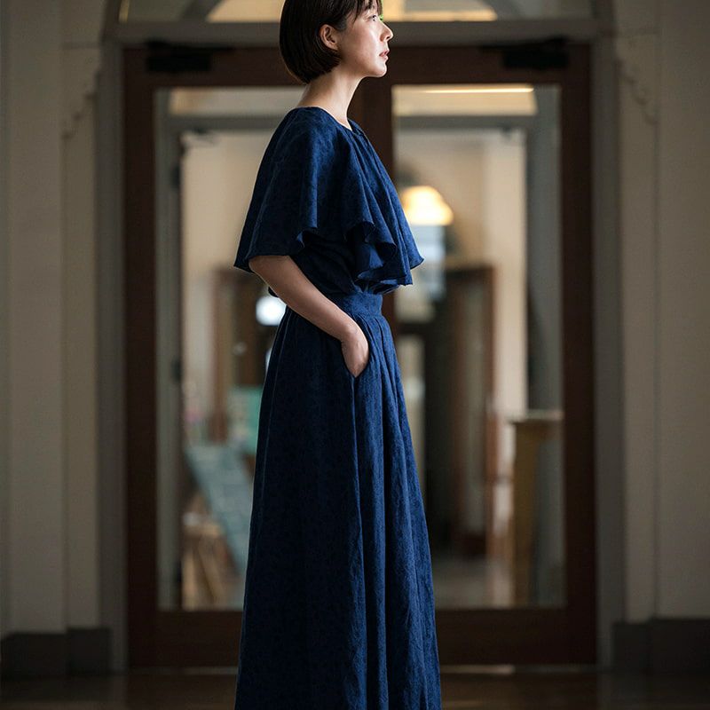 軽くてくったり柔らかいリネン生地なので、ふんわり落ちるいい感じのドレープが出てくれました。