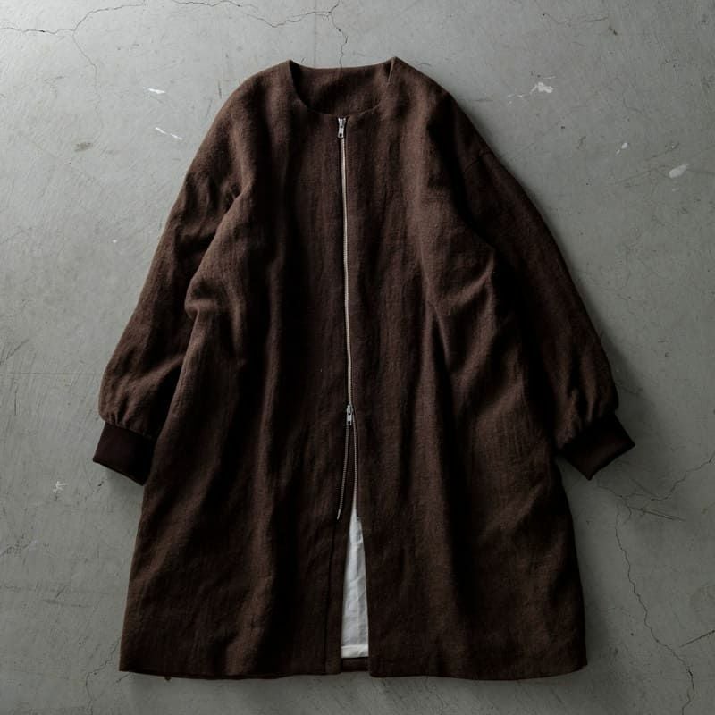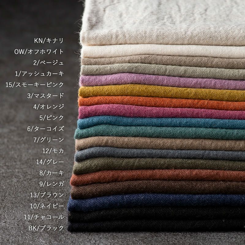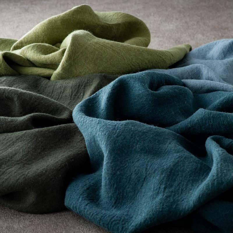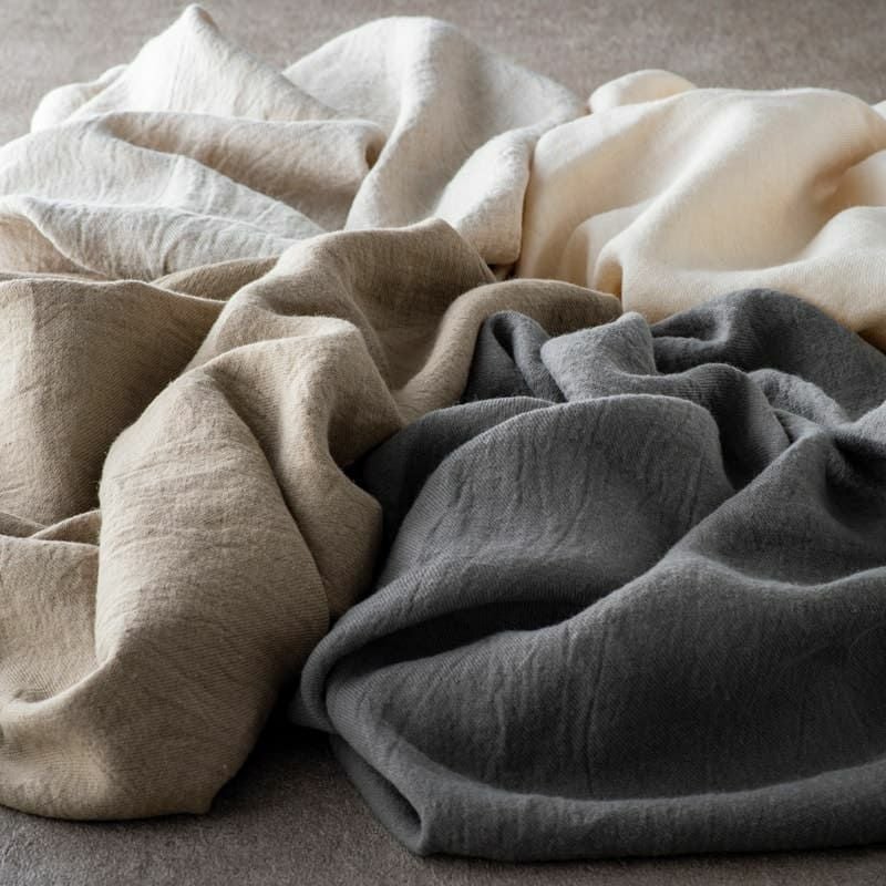 生地の森のリネンウールは、麻(ラミー・リネン)に毛(ウール)を混合し、程よい毛羽感とふっくらと柔らかみのある繊細な風合いで、季節感を演出します。
