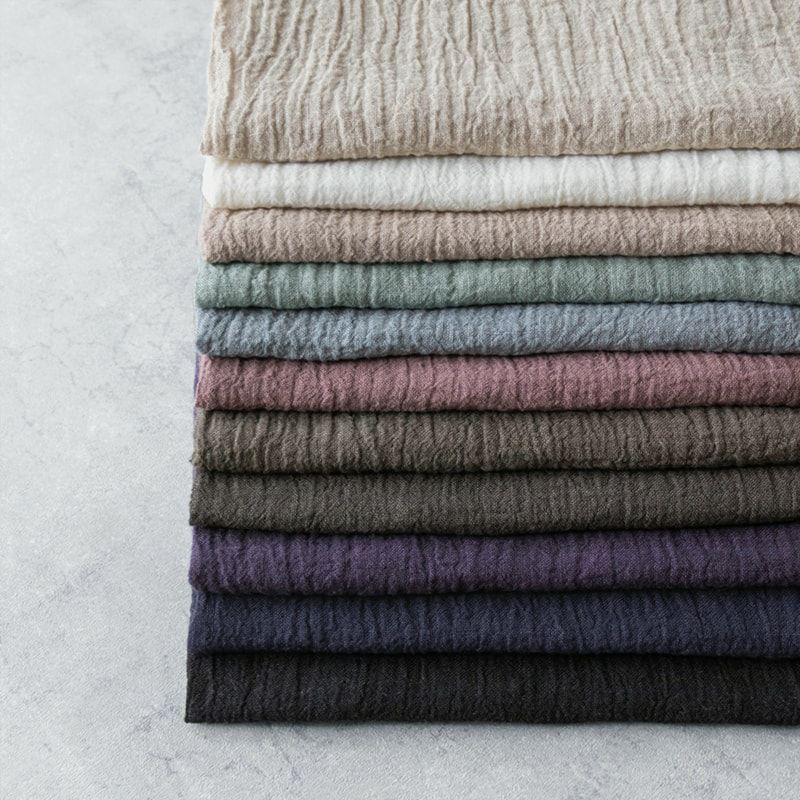 他の画像を見る ナチュラルなタテシワが清涼感をプラス、汗ばむ季節にも心地よい風合い感 【 生地 布 オリジナル 無地 麻 薄手 】 【在庫限り】リネン40番手ナチュラルクレープ 販売価格 ¥ 1,595 税込 ・生地幅:106cm ・混率:リネン100% お気に入りに登録する