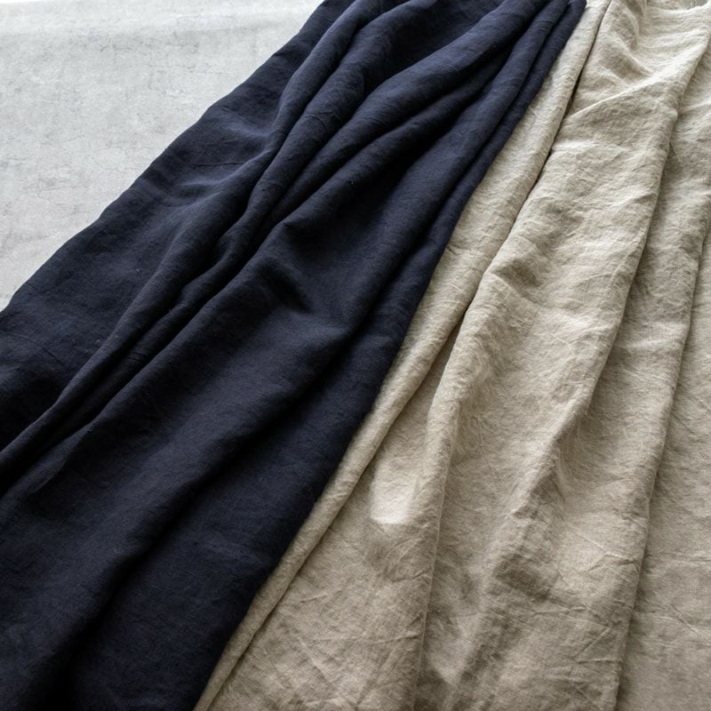 ワイド幅リネン25番手ナチュラルワッシャー color:サックス/オリーブグレー/ネイビー/ブラック