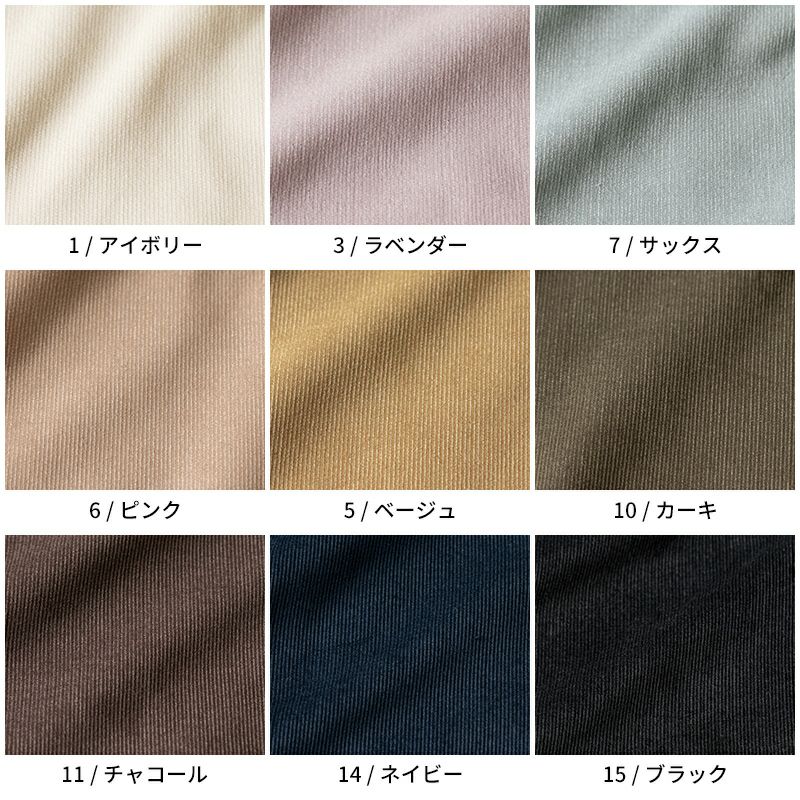 春夏にも使える上品な細コール 「コットンシャツコール21W」は、滑らかな触り心地の良い生地で、秋冬だけでなく春夏アイテムにもこの細コールはおすすめです。