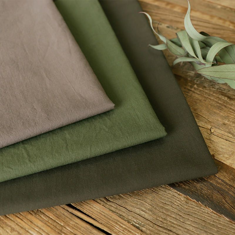 60番手コットンローンワッシャーcolor:左からモカグレー/ミリタリーグリーン/カーキ