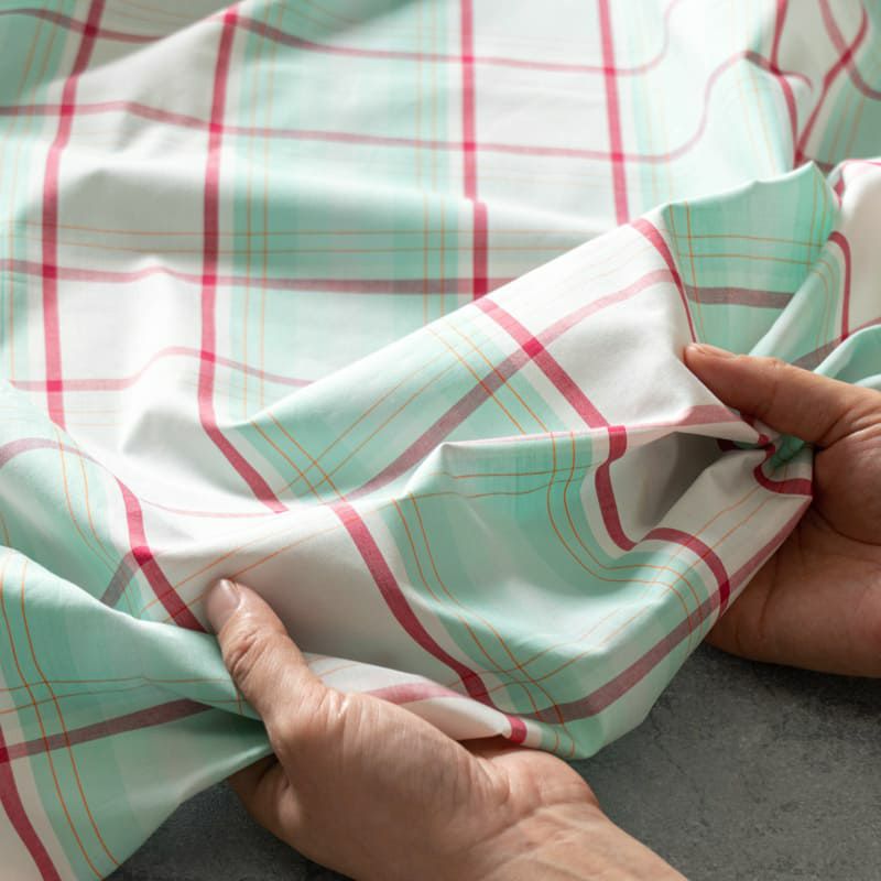 こちらの「先染めコットンマドラスチェック」は、現物のみの数量限定で販売させていただきます。
