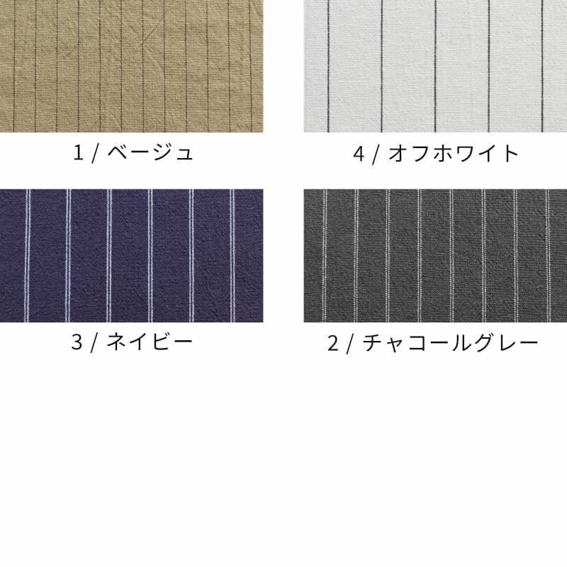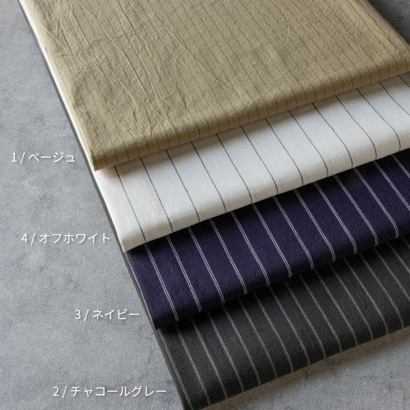 先染め綿麻ペンシルストライプ | コットンリネン生地通販 生地の森color:4/オフホワイト、3/ネイビー