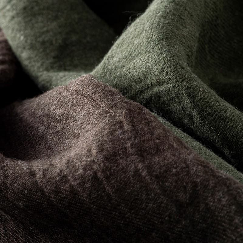ぬくもり感引き立つ繊細な毛羽感のテクスチャー「綾織りベルギーリネンウールビエラ40番手」は、糸の性質が出やすい綾織りに織り、良質なリネンと僅かなウールの混率でもそれらの特性を最大限に活かすべく、染職人がじっくり時間をかけて丁寧に染め上げていくことにより、繊細なウールの毛羽感をしっかりと表面に出し、ぬくもりのある表情を引き立てております。