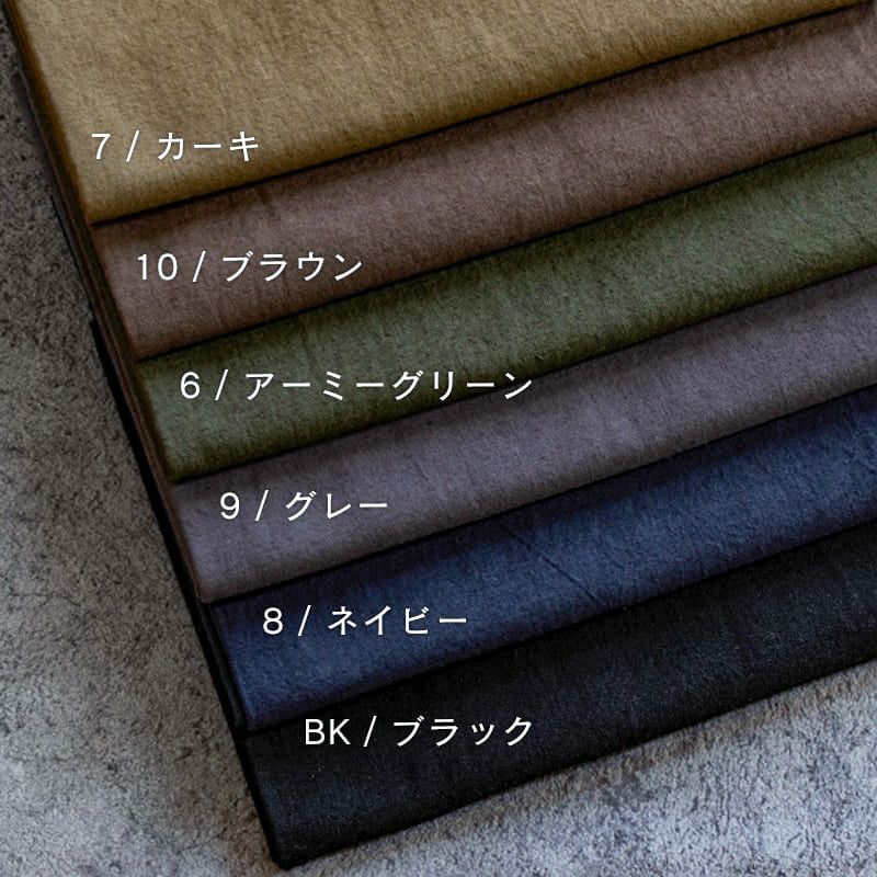 綿麻 ルーズオックスダメージダイド コットンリネン オックスフォード生地color:7/カーキ、10/ブラウン、6/アーミーグリーン、9/グレー、8/ネイビー、BK/ブラック