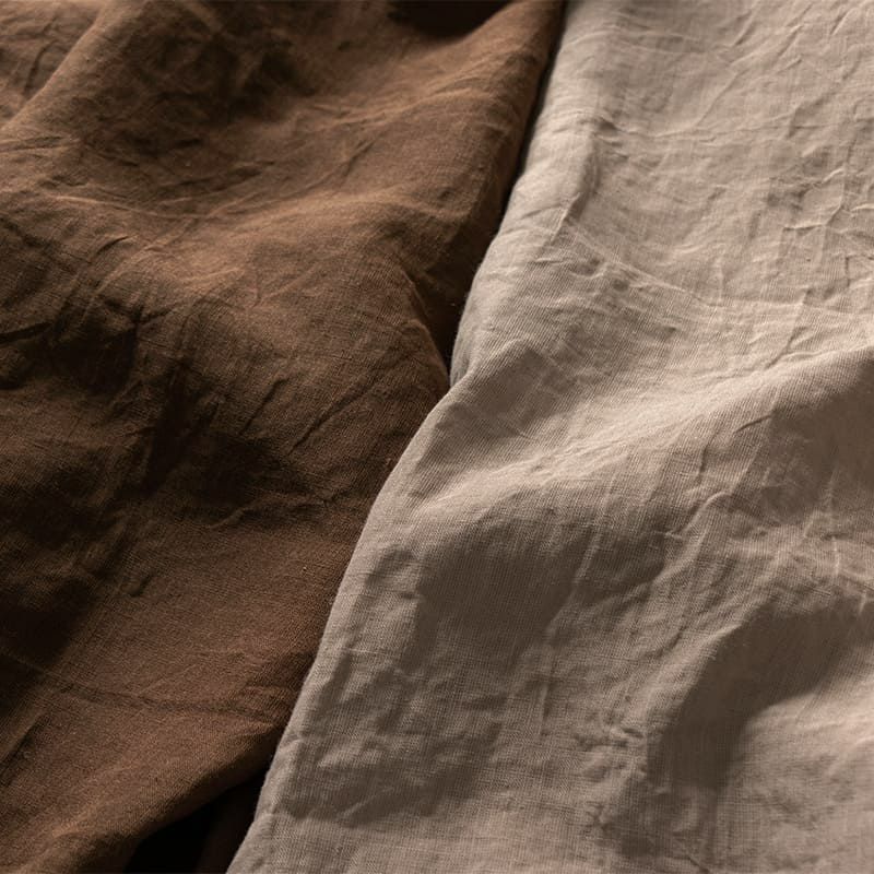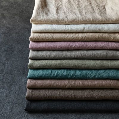 希少な50番手リネン糸を使用した国内織布・国内加工のリネン生地「ワイド幅ベルギーリネン50番手」は、ベルギー産フラックス原料の良質なリネン糸の中でも大変希少な50番手のリネン糸を使い、遠州地方で広幅の平織りの生地に丹念に織り上げ、良質なリネン糸の麻本来の味を活かすべく、生地に余計な負担をかけず自然で素朴な風合いに仕上げました。