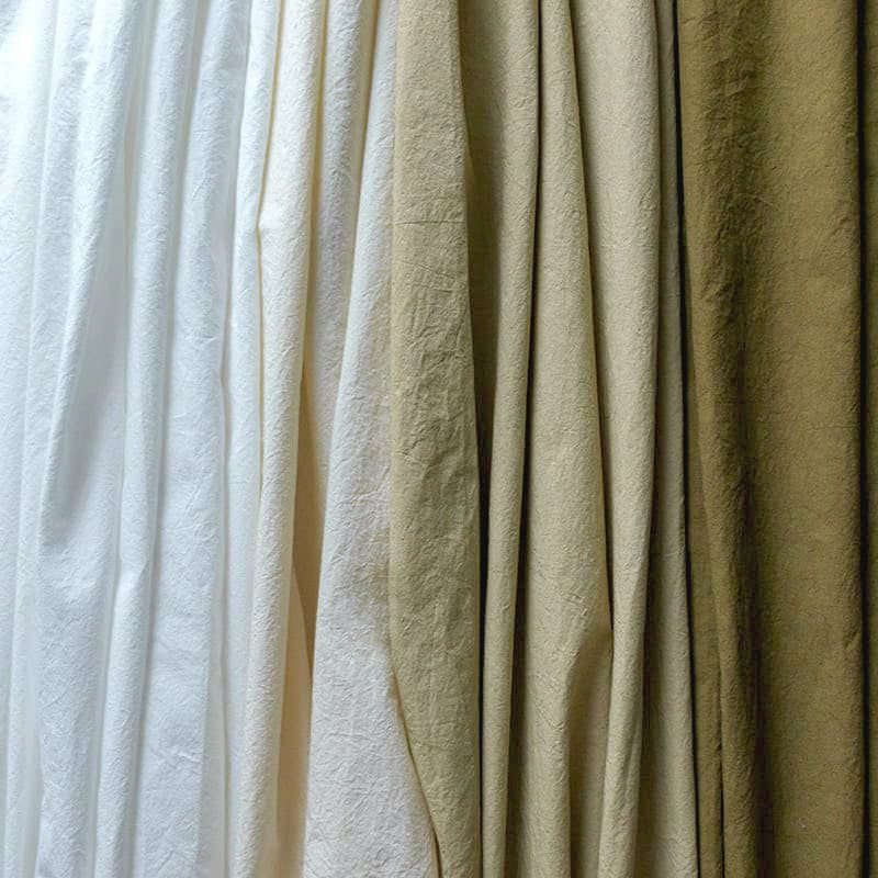 生地の森のオリジナル生地は、素材の風合い作りや面(ツラ)の出し方、染色の技術において、