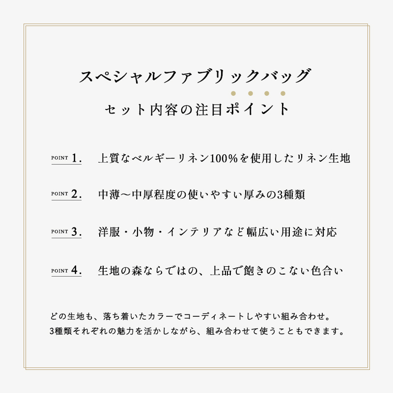 スペシャルファブリックバッグ Aセット 生地の森 20周年 アニバーサリー 福袋 スペシャルファブリックバッグ Bセット 生地の森 20周年 アニバーサリー 福袋 スペシャルファブリックバッグ Cセット 生地の森 20周年 アニバーサリー 福袋