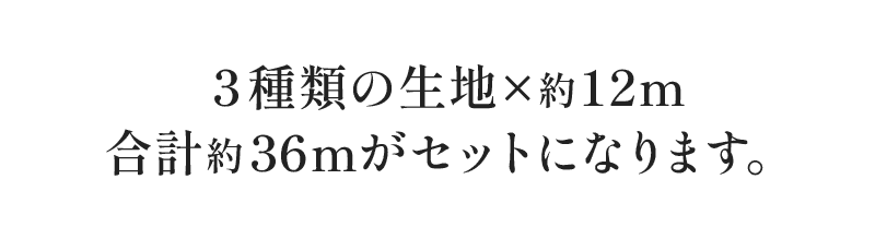 たっぷり使える半反サイズ(約12m)を、3種類セットにしてお届けします。