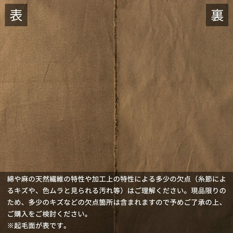 加工上の特性綿や麻の天然繊維の生地の特性や加工上の特性による多少の欠点(糸節によるキズや、色ムラと見られる汚れ等)はご理解ください。