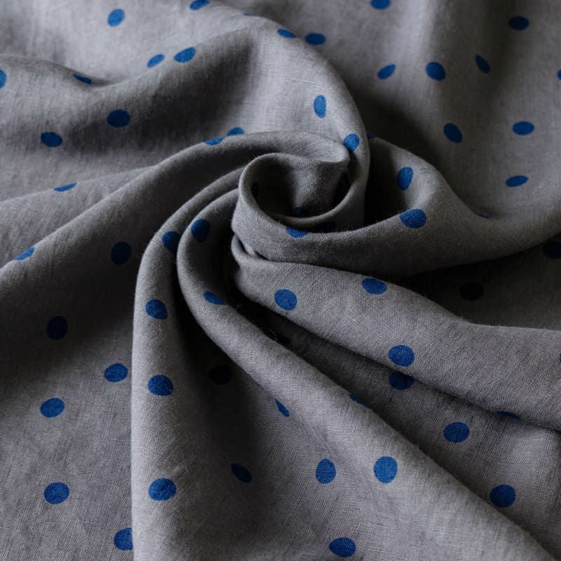 ベルギーリネン40番手ランダムドットプリント color:1/ライトグレー(ドットの色:ブルー)
