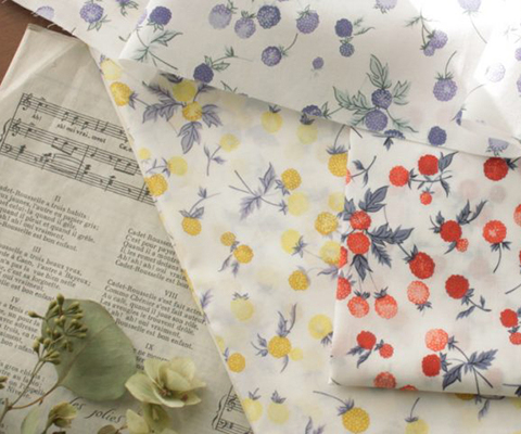盛夏の定番素材として、ギャザーブラウスなどにお使いいただいております。廃色になったレッドのリクエストにいつかお応えできるよう、継続していきたいと思います。