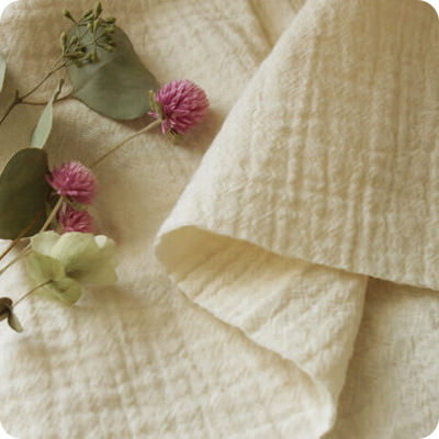 一般に、色や柄のかわいらしいガーゼがたくさんありますが、私たちはいたってシンプル。この6重織りを織れる織機は限られているため、一度にたくさん作ることができません。だからこそ、綿素材らしいぬくもり、このピュアな素材感をぜひ味わってほしいと思っております。