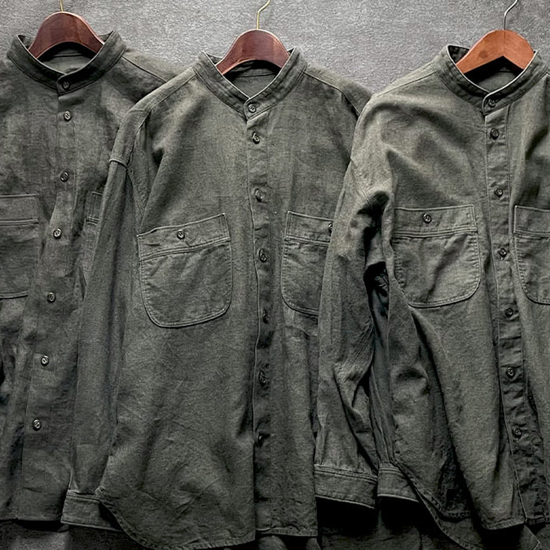 生地幅 108cm | 混率 ラミー50% リネン50% | 厚み 普通リアルな古服感を生み出すため施されたダメージダイド&ウォッシュ(ddw®)加工によって、自然に生まれる不均一なシワや染めムラが素材の味わいを引き出し、ヴィンテージライクなダメージ感を演出。