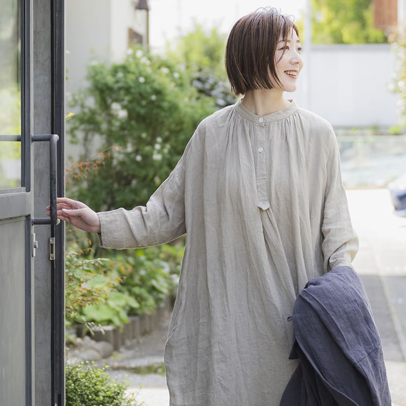 薄手でありながらもふっくらとした弾力感と、くたっとしたとろみのある風合い。春夏の季節を問わず雰囲気をお楽しみいただけます。
