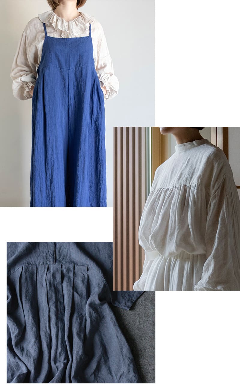 羽織りやアウター、エプロン、ボリュームのあるパンツやスカートなど、装いに“芯”をもたらします。
