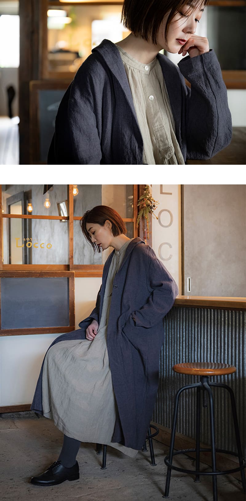 コート使用生地 平織りベルギーリネンウール40番手
